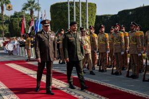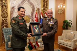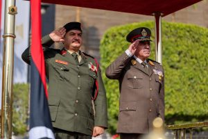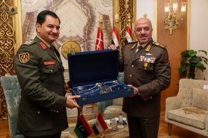 بحث نائب القائد العام للقوات المسلحة، الفريق أول ركن صدام حفتر، مع القائد العام للقوات المسلحة المصرية وزير الدفاع والإنتاج الحربي، الفريق أول عبدالمجيد صقر، آفاق التعاون المشترك بين البلدين، خاصة في مجال التدريب وتبادل الخبرات بين الجانبين.