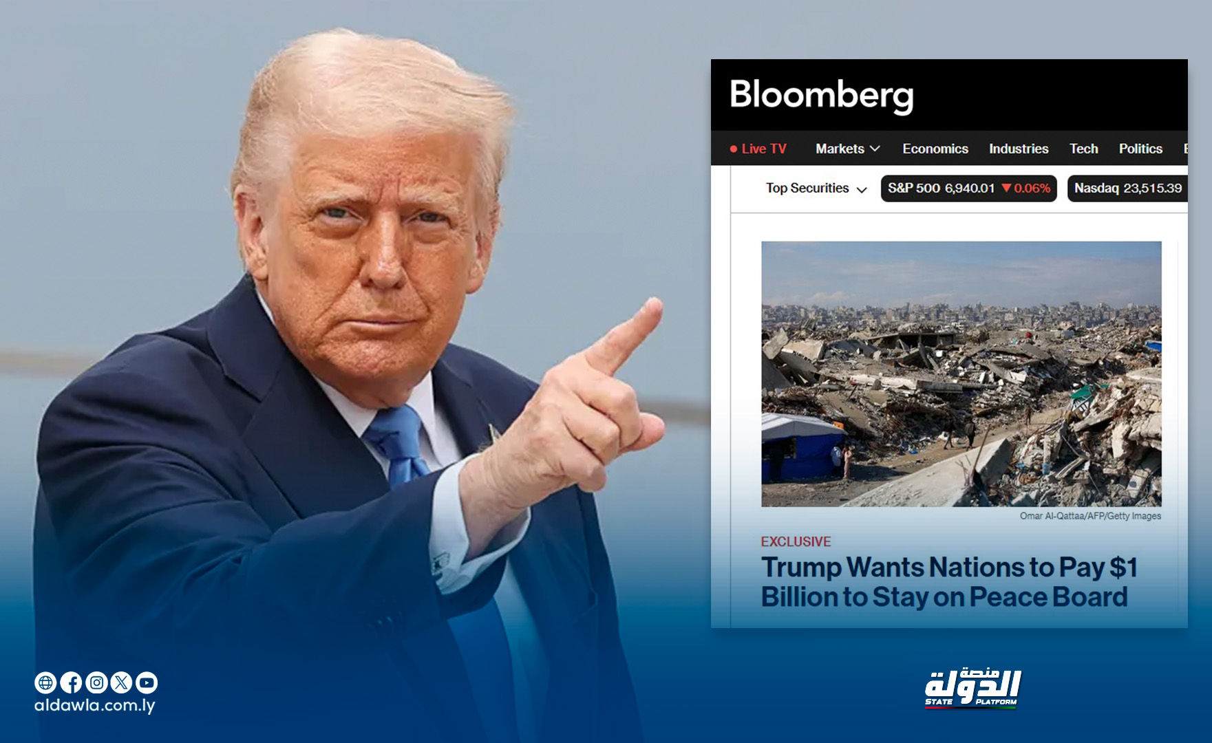 ذكرت وكالة بلومبرغ، أن إدارة الرئيس الأمريكي دونالد ترامب، تعتزم إنشاء “مجلس السلام” لقطاع غزة، مع تحديد الرئيس الأمريكي لرئاسة المجلس ومهام الدول الأعضاء، وفرض مساهمات مالية قد تتجاوز المليار دولار للدول الراغبة في العضوية الدائمة.